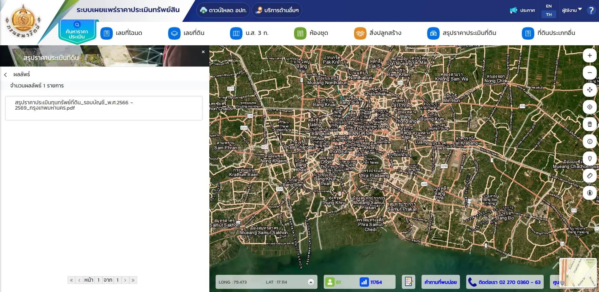 5.กดค้นหา แล้วตรวจสอบผลลัพธ์ราคาประเมิน ข้อมูลที่แสดงจะรวมถึงราคาประเมินต่อตารางวา และราคาประเมินรวมของแปลงที่ดินนั้น ๆ