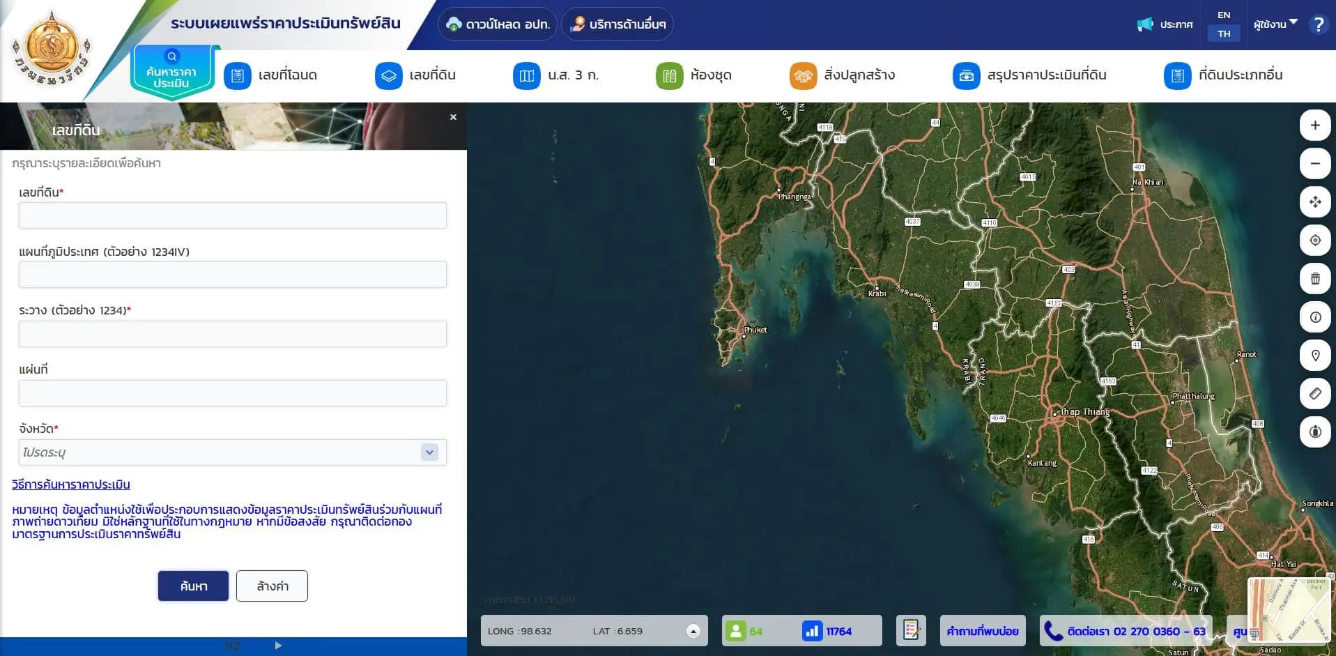 หากคุณมีข้อมูลเลขที่โฉนดอยู่ในมือ การค้นหาราคาประเมินจากเว็บไซต์กรมธนารักษ์สามารถทำได้ง่ายมาก โดยกรอกข้อมูลในฟอร์มที่กำหนดไว้ดังภาพด้านล่างนี้