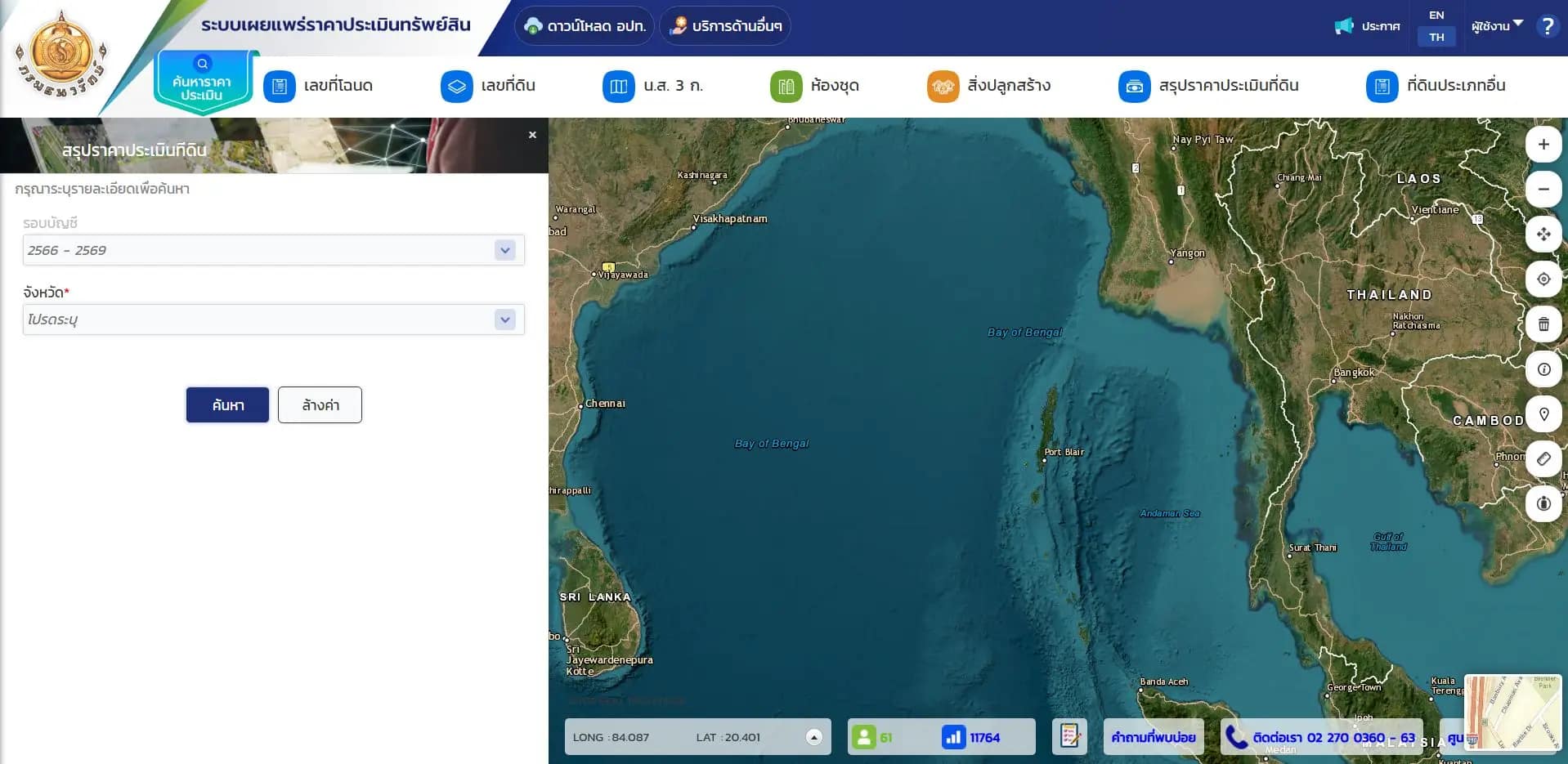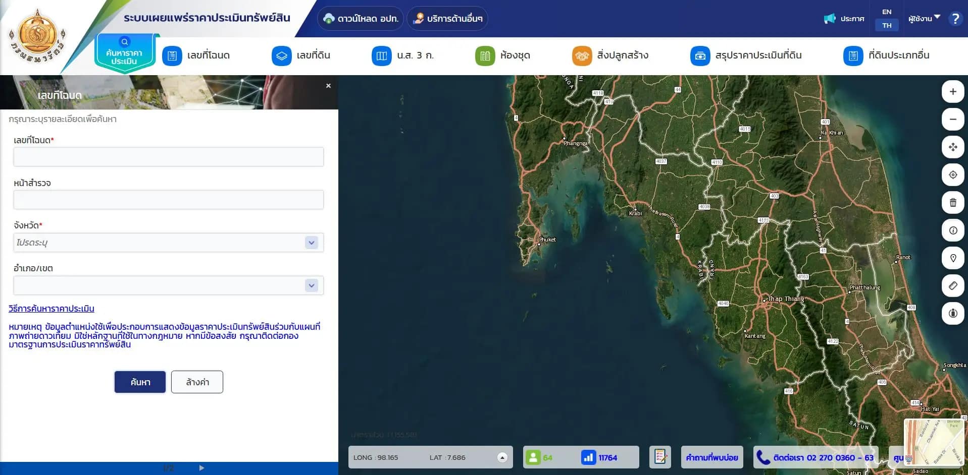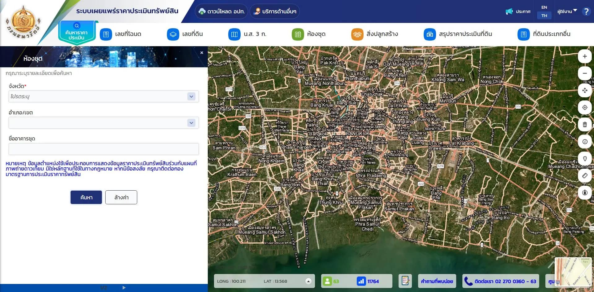 ประเมินได้เช่นกัน คุณสามารถใช้ เลขที่ดิน น.ส. 3 ก. แผนที่ระวาง หรือ ชื่ออาคารชุด ในการค้นหาแทนได้ผ่านระบบค้นหาของกรมธนารักษ์