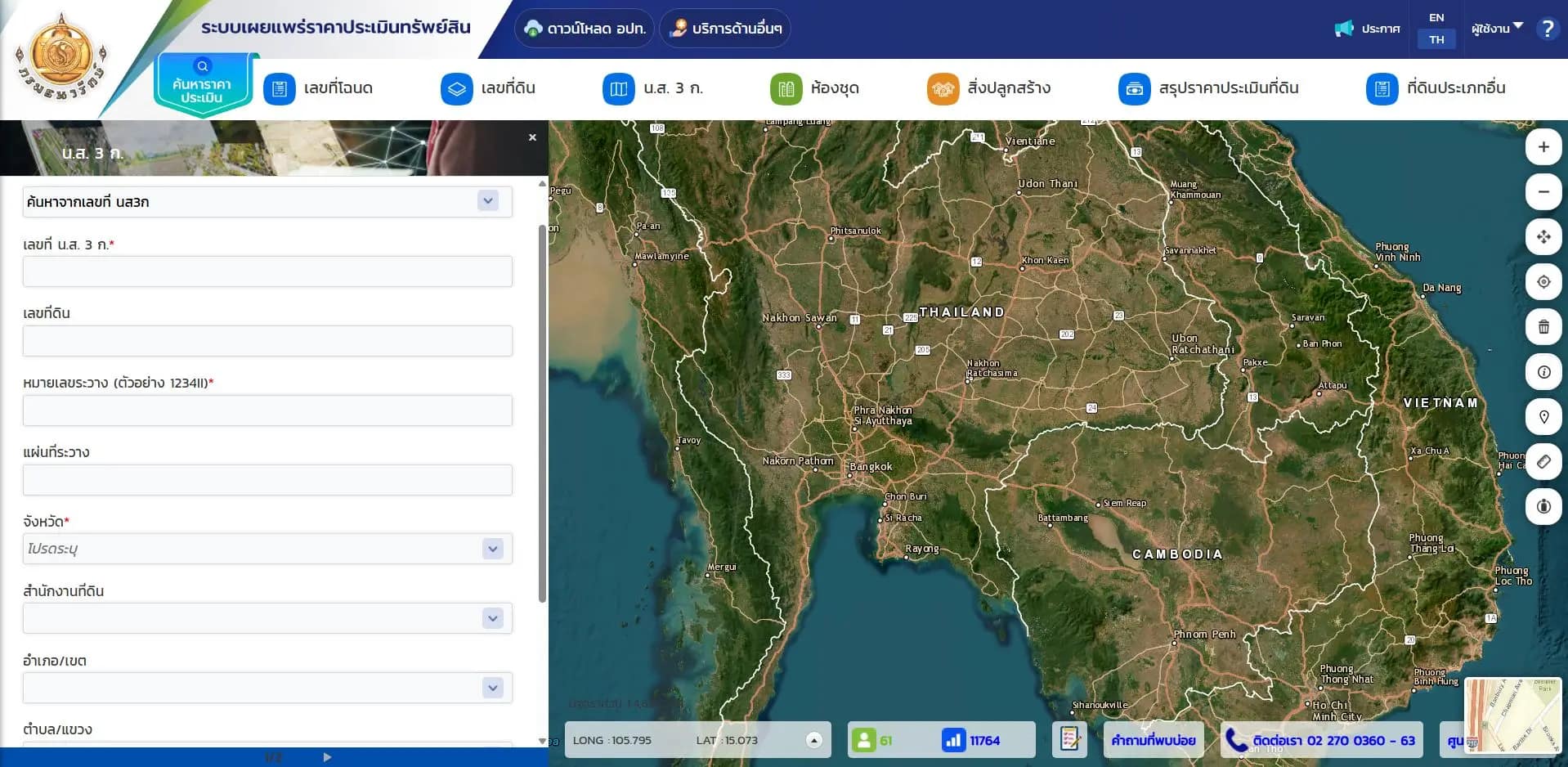 4.กรอกข้อมูลที่ระบบต้องการให้ครบถ้วน เช่น จังหวัด, อำเภอ, ตำบล, หมายเลขระวาง ฯลฯ
